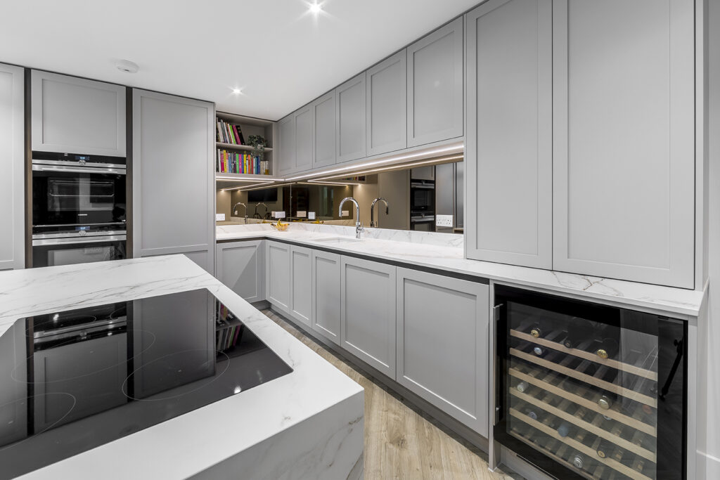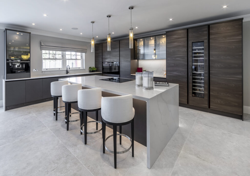 Part of a striking new architect-designed home, this project centred on creating a statement kitchen at the heart of an expansive open-plan space. Designed for effortless entertaining and serious home cooking, it features premium appliances, a built-in coffee machine, a dedicated utility room and a bespoke media wall. A cohesive, high-performance family space without compromise.